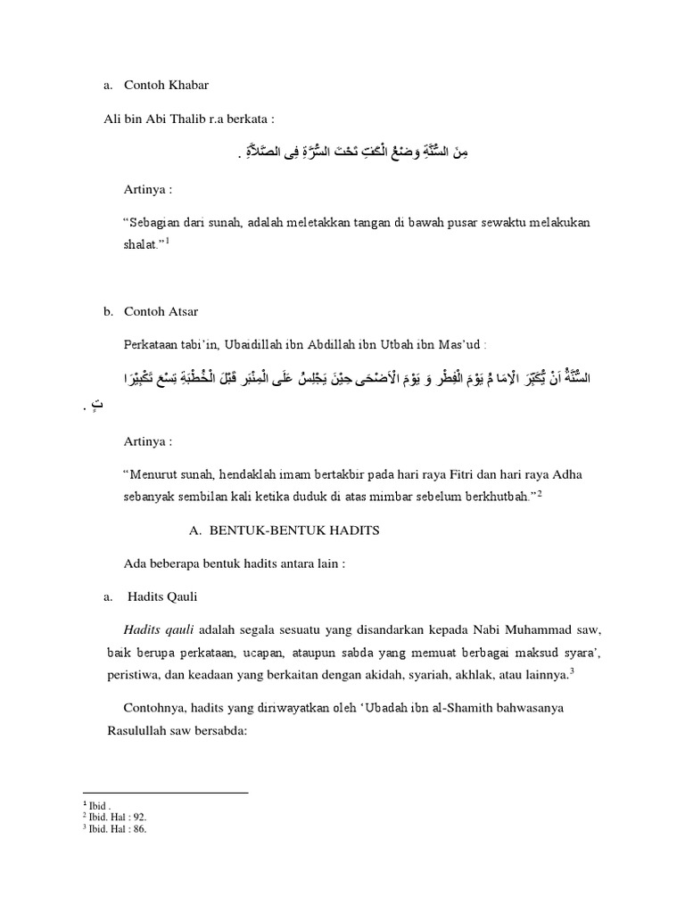 Contoh Khabar Contoh Atsar Dan Bentuk Hadist Pdf